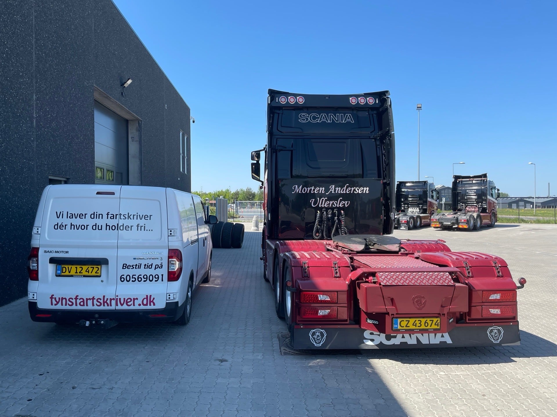 20. maj 2024 2 års tachograf eftersyn på denne fine Scania. Arbejdet blev udført på pladsen hos vognmanden.